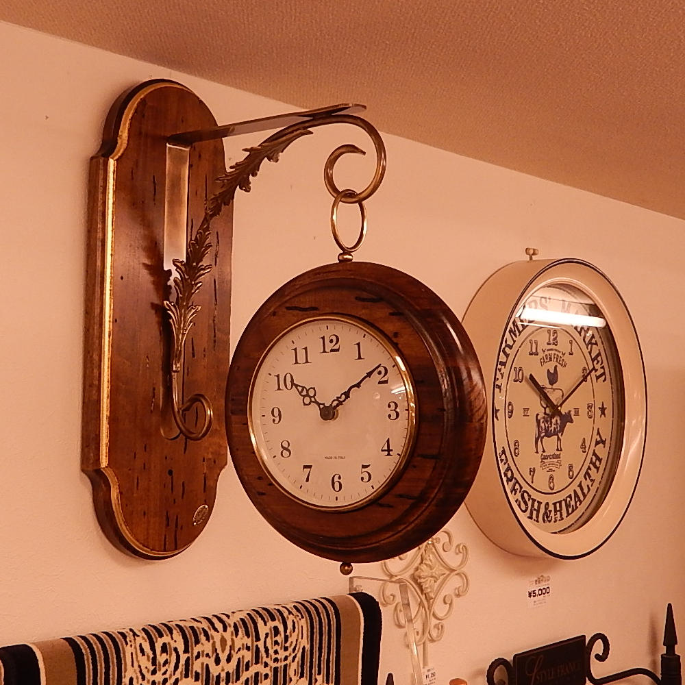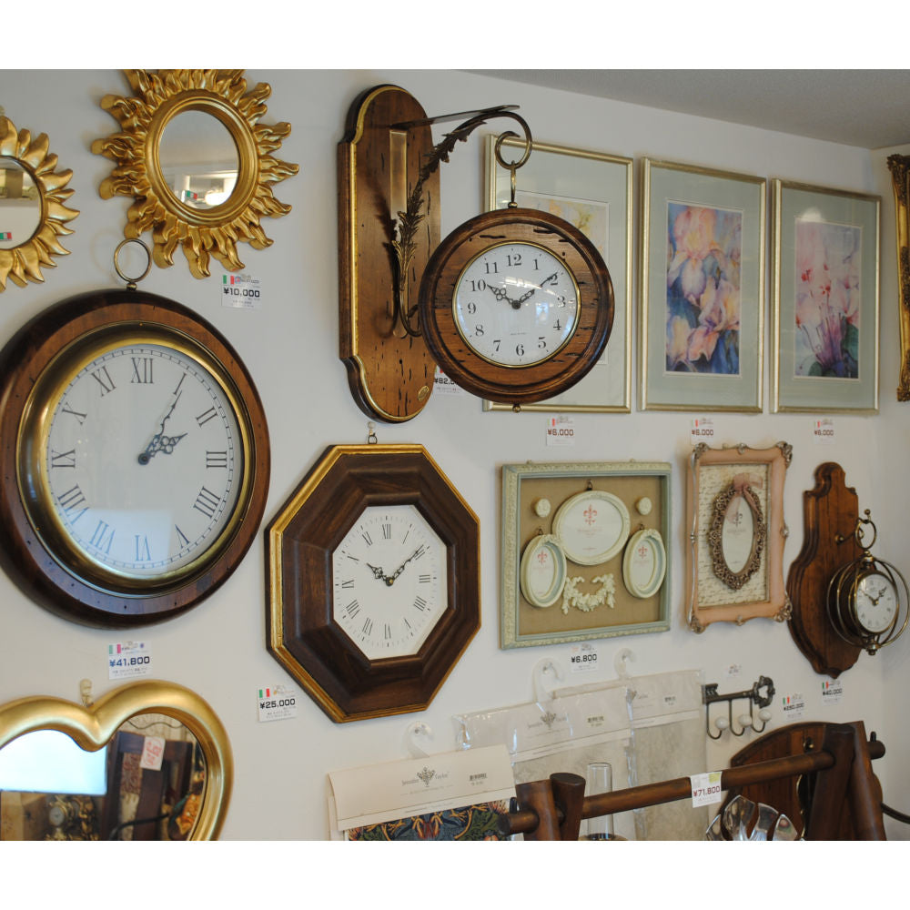 イタリア製古木家具で人気のカパーニの定番品ですが、高級な掛け時計なので滅多に入荷しない希少な時計です。