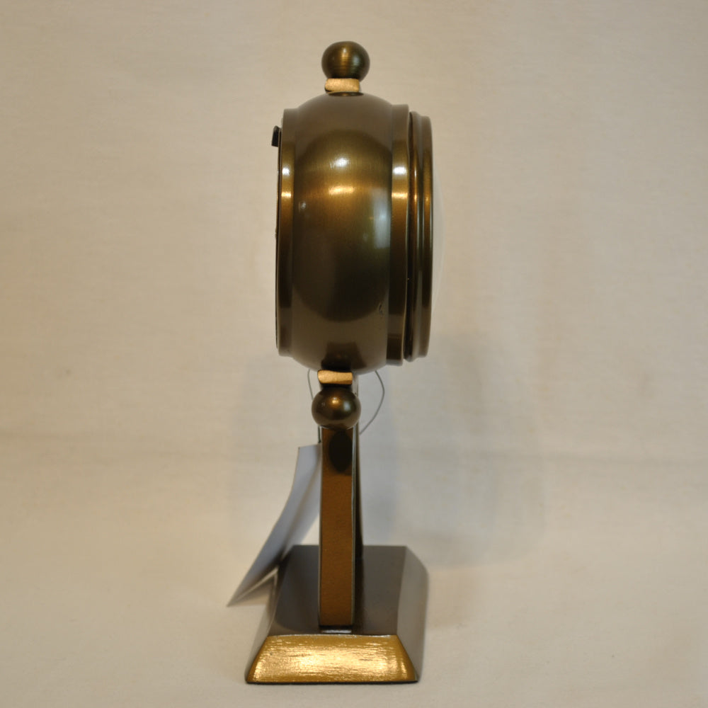 レトロティックな雰囲気漂うアンティーク調の時計、落ち着いたブロンズ色に輝くおしゃれなテーブルクロック(置時計)です。
